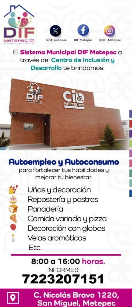 C. Nicolás Bravo 1220, Barrio de San Miguel, Metepec, Estado de México.